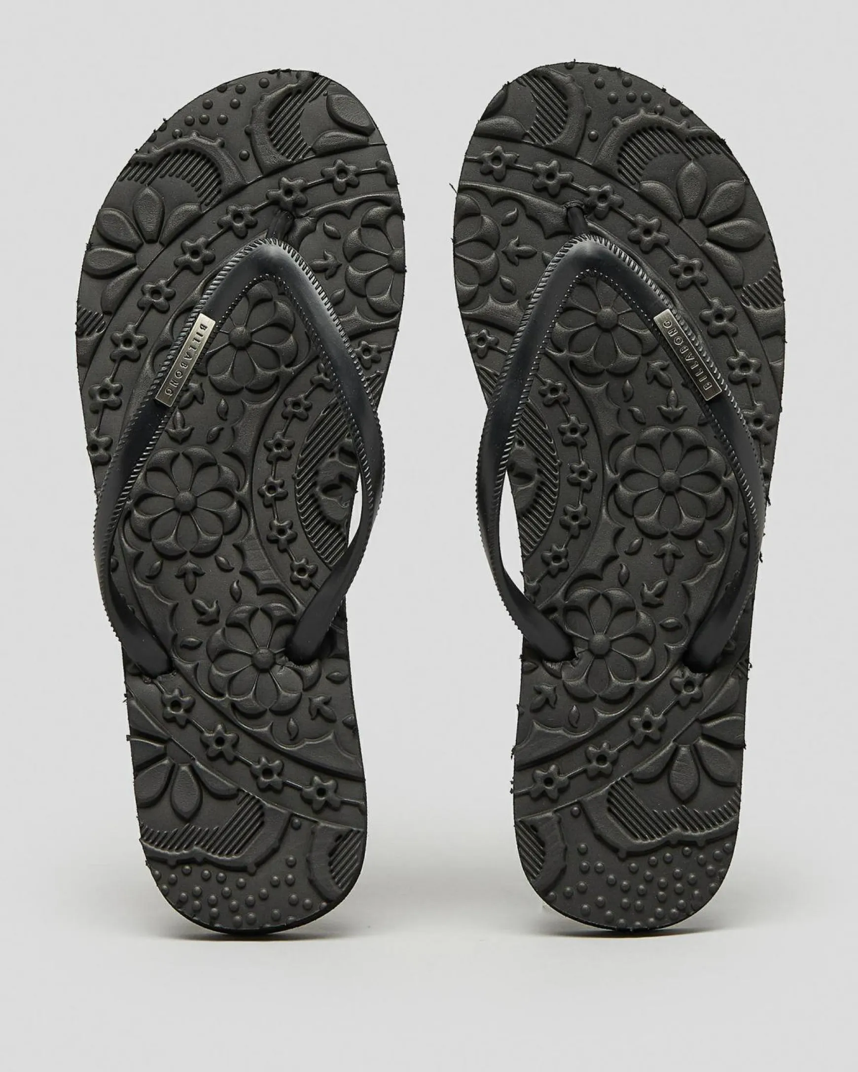 Slim straps, Textured footbed, Metal logo