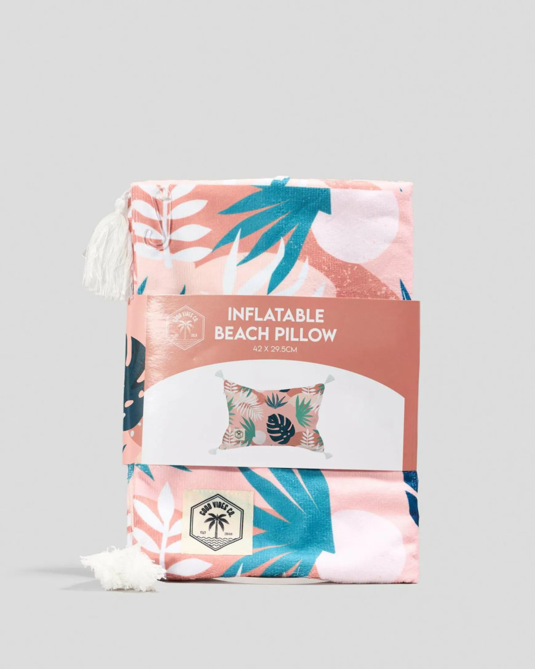 Blush Palm Inflatable Beach Pillow for All Ages