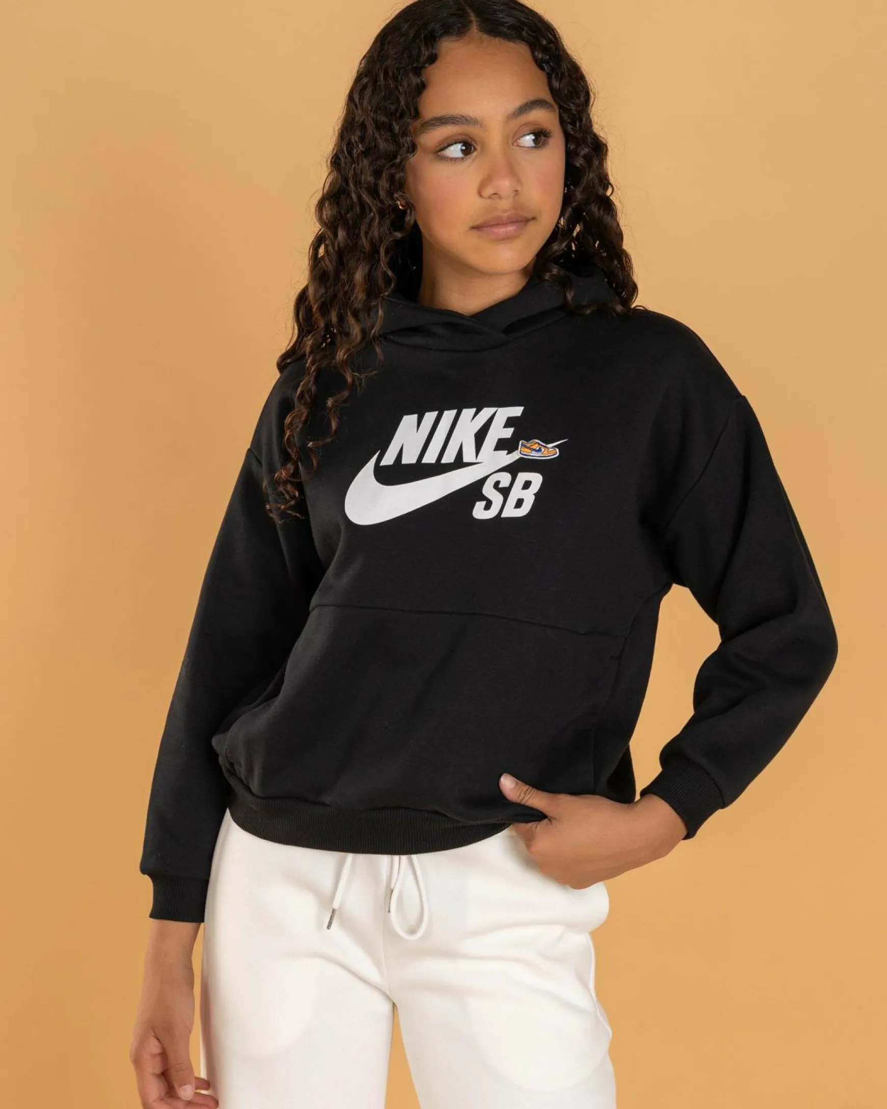 The Nike Girls’ Icon Fleece Hoodie SB in Black is a classic choice for staying warm and stylish on chilly days.