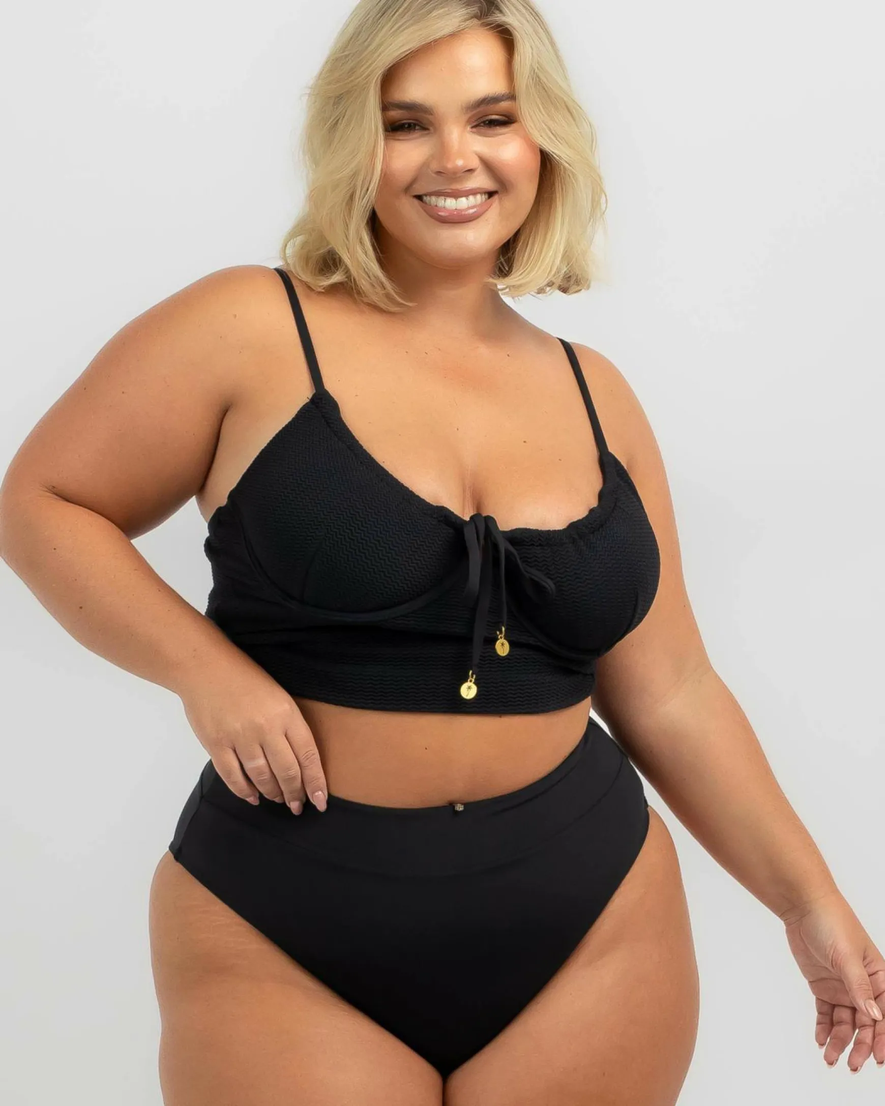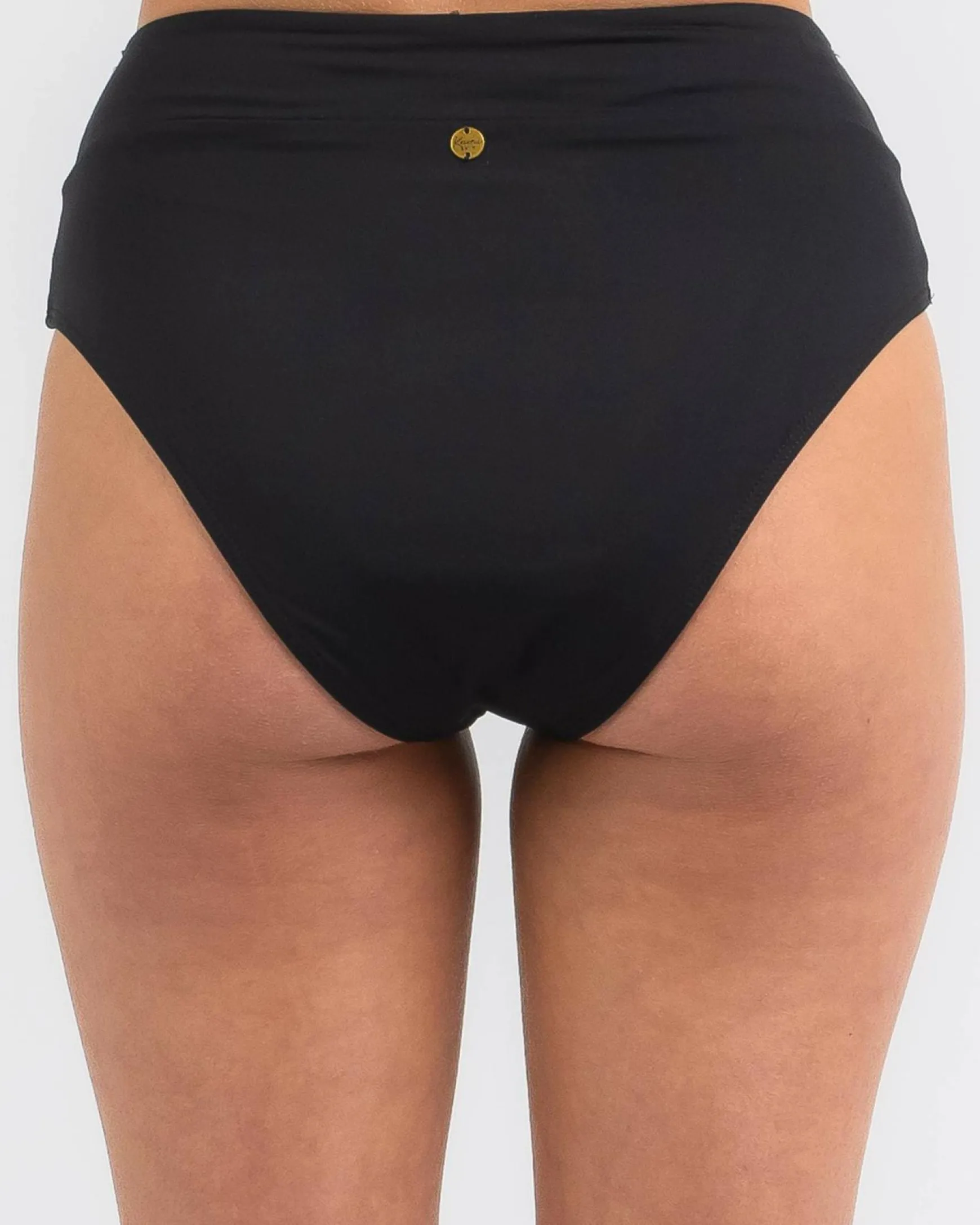 The Kaiami Rita High Waisted Bikini Bottom in Black is a sleek and versatile swimwear essential. Perfect for mixing and matching with your favorite bikini tops.