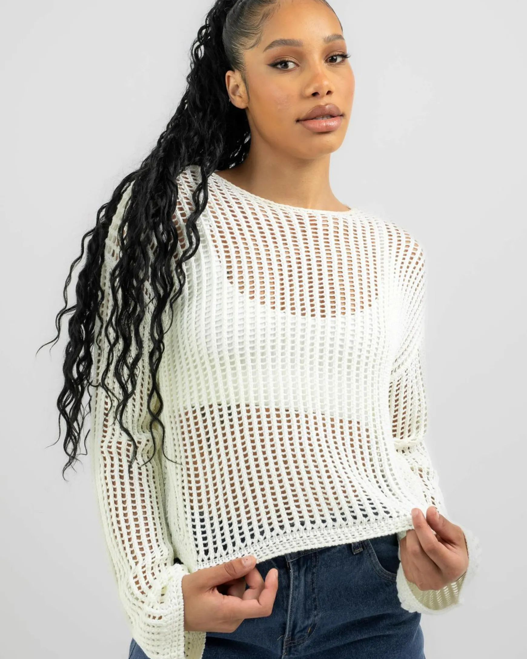 Womens Alexa Crochet Long Sleeve Top