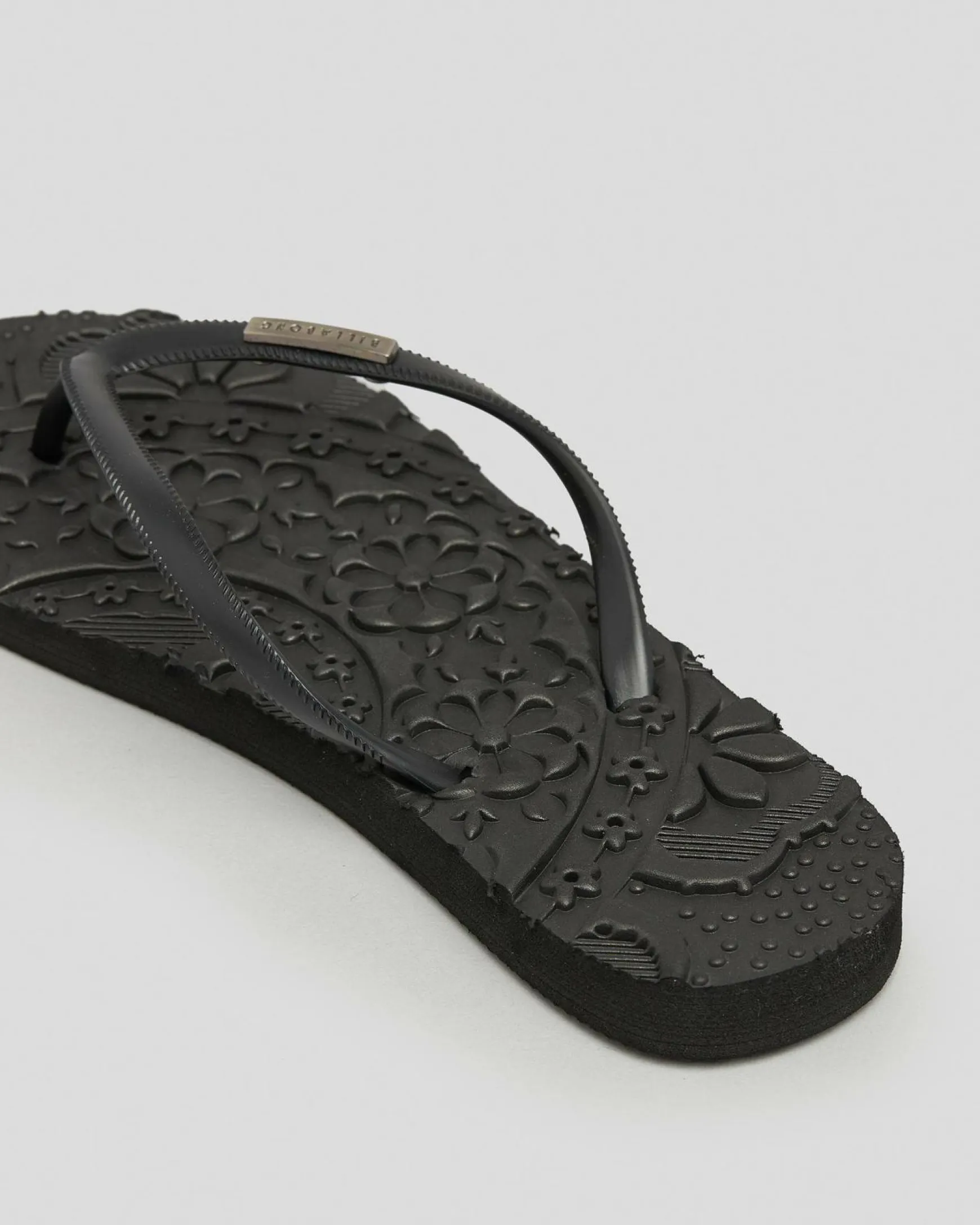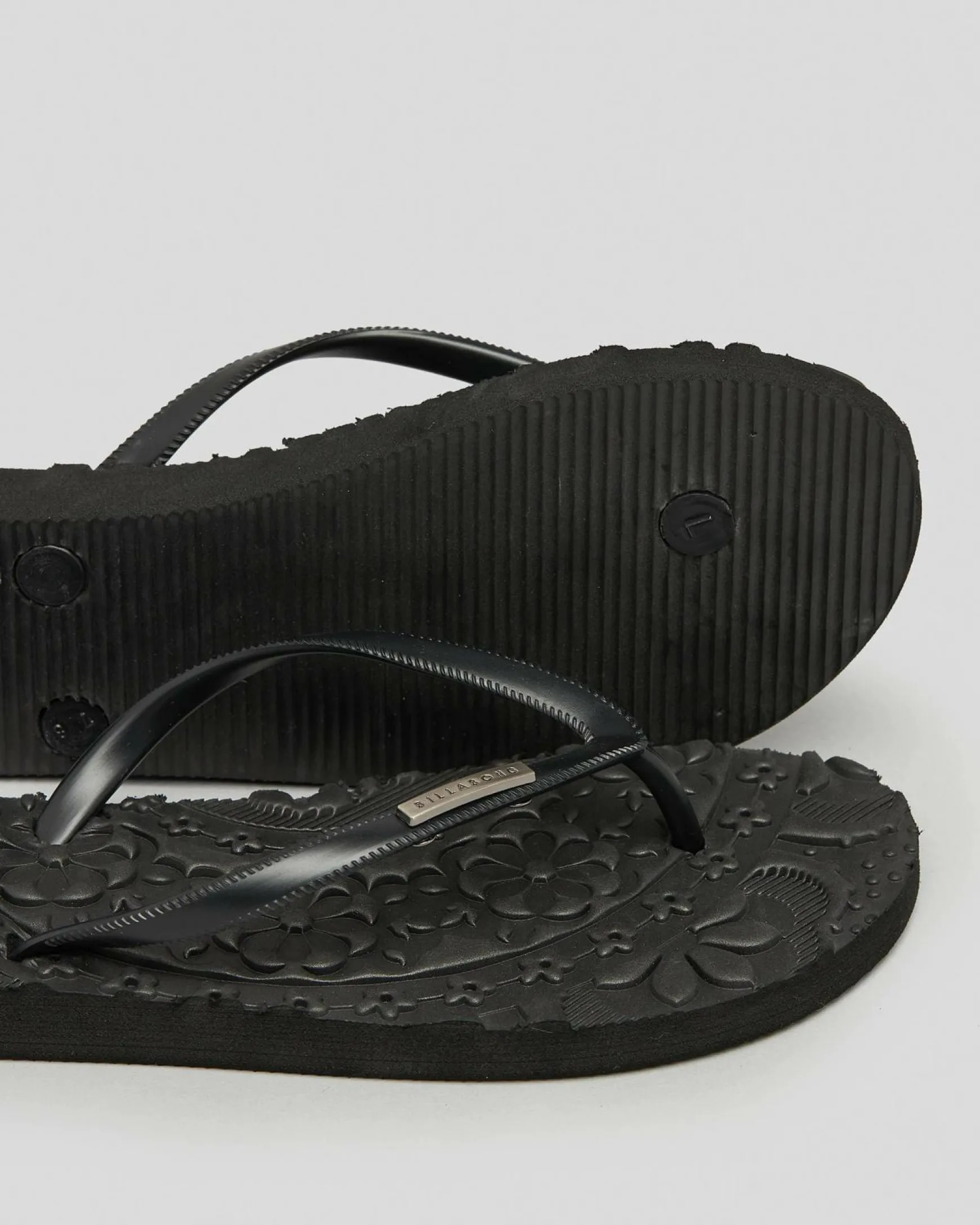 Slim straps, Textured footbed, Metal logo