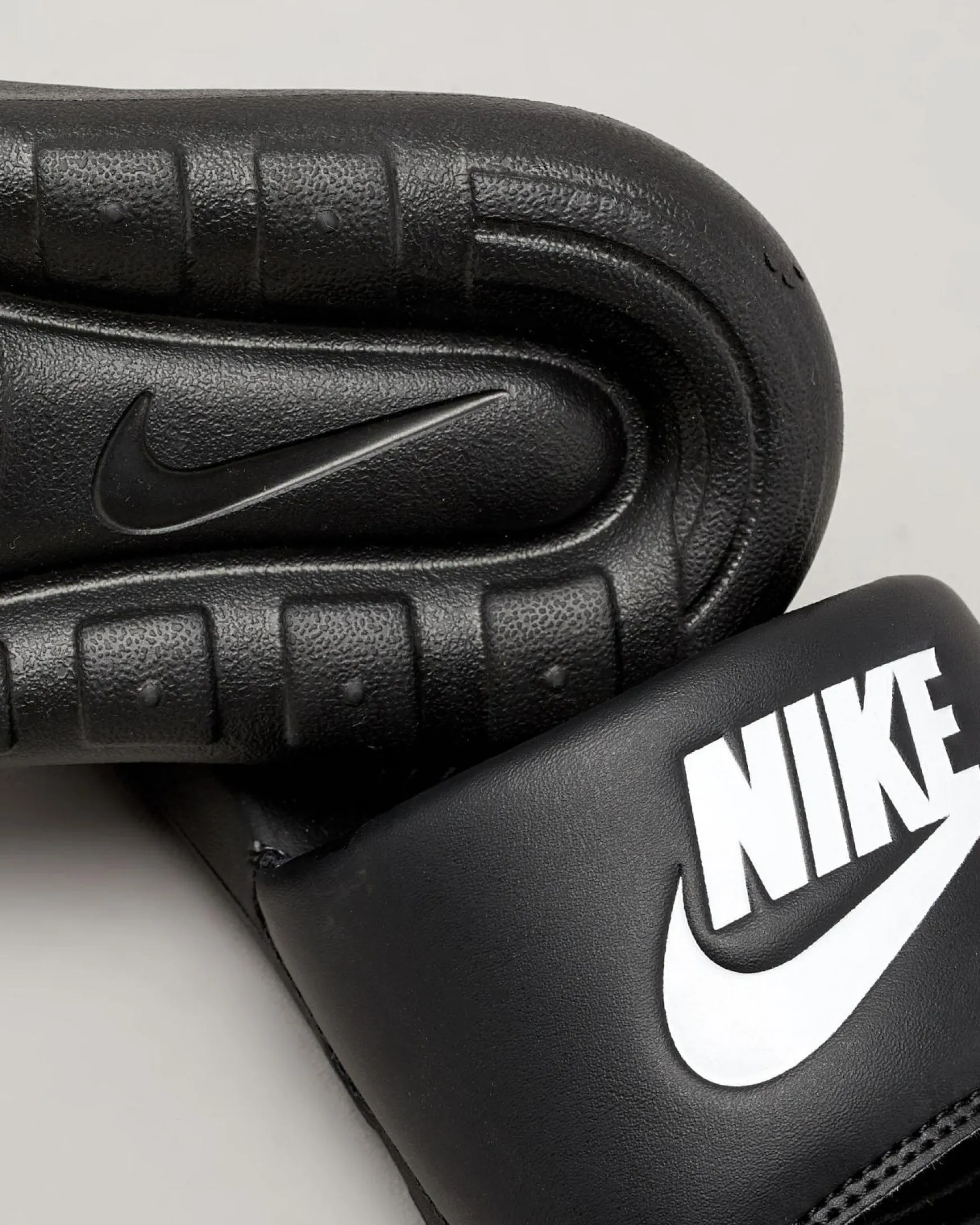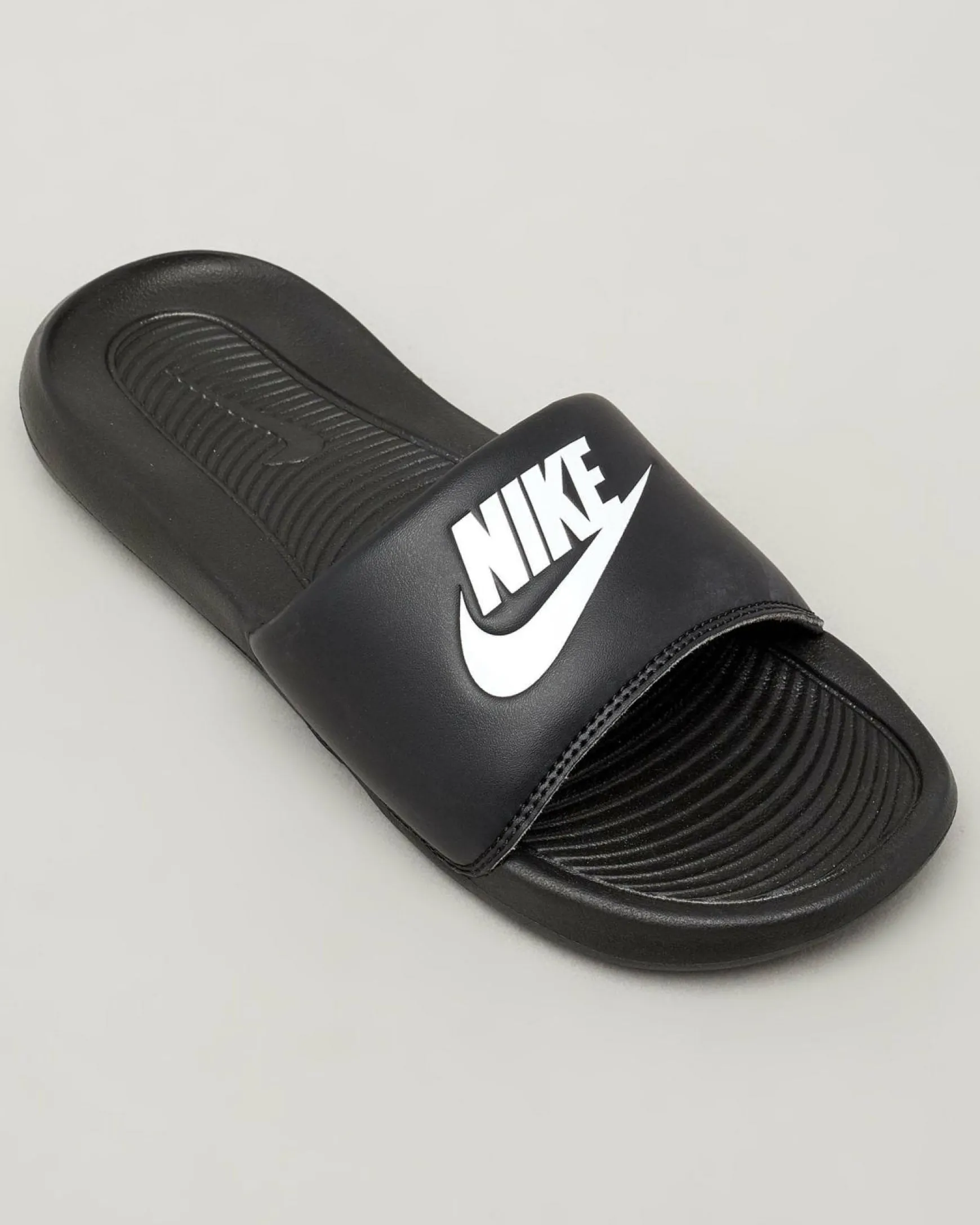The Nike Boys’ Victori One Slides in Black offer sleek style and easy comfort for active kids on the go.