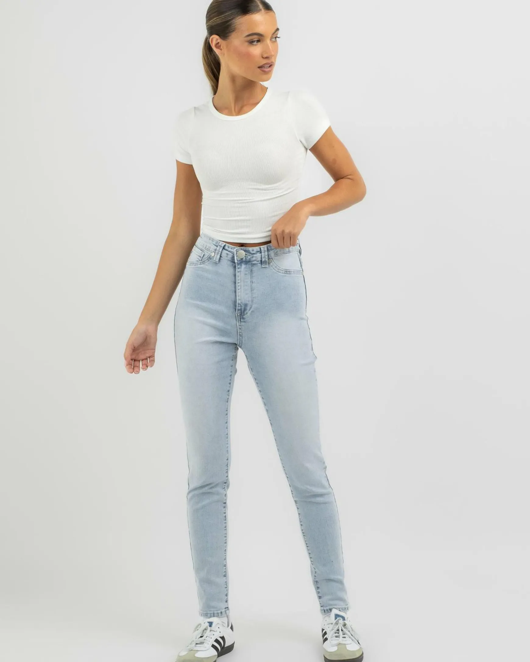 DESU Dahlia Jeggings in Light Blue – Elevate your denim collection with these versatile and stylish light blue jeggings, perfect for any casual occasion.