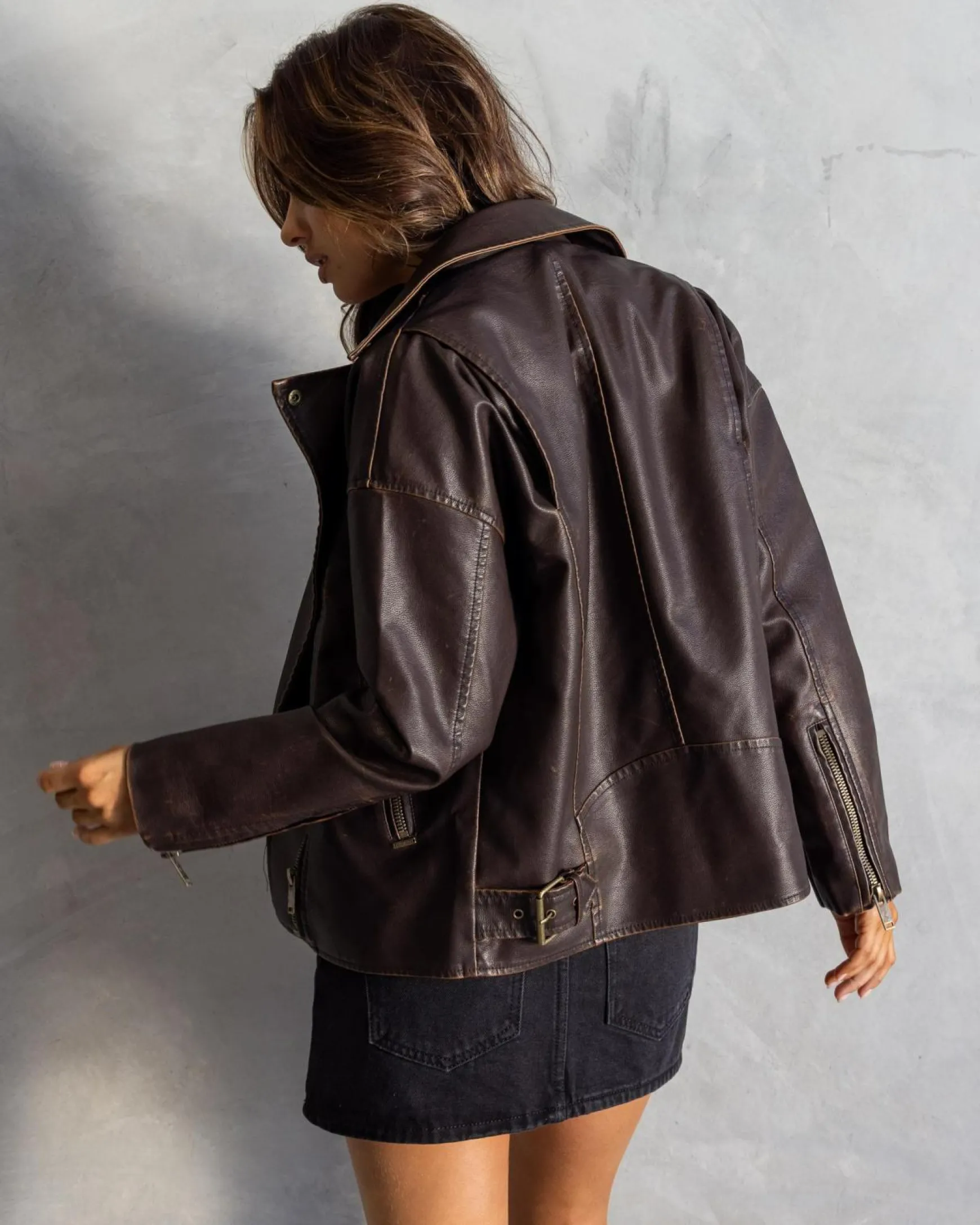Womens Drifter Faux Leather Biker Jacket