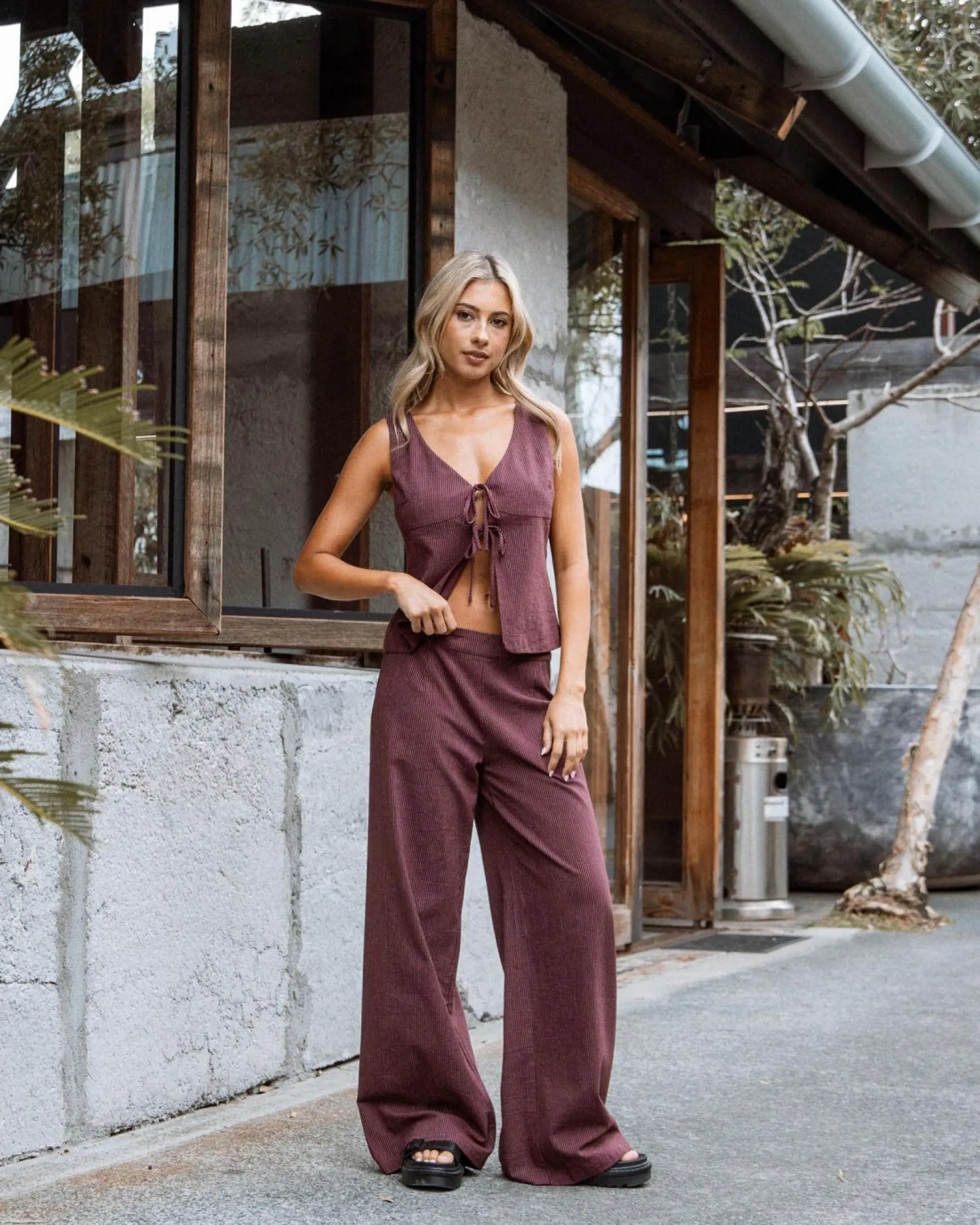 Womens Gia Stripe Tie Top