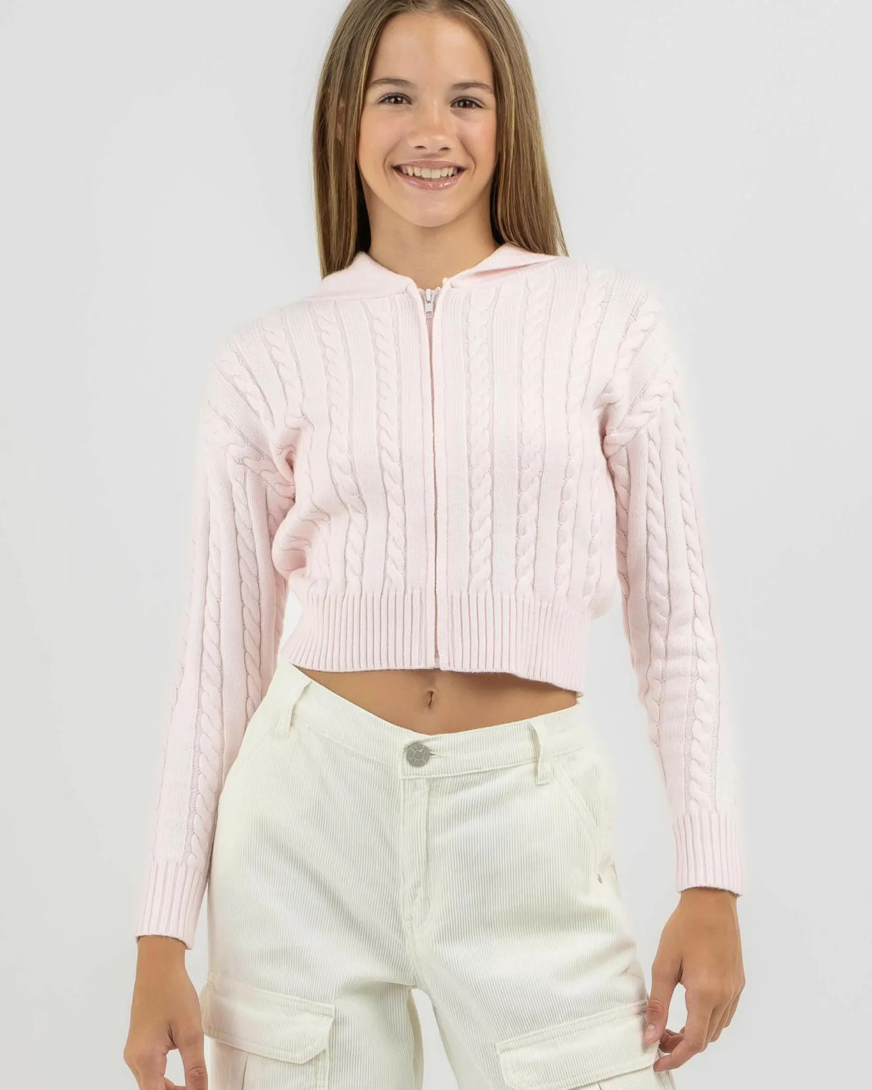 Girls’ Bailee Hooded Cable Knit Jumper
