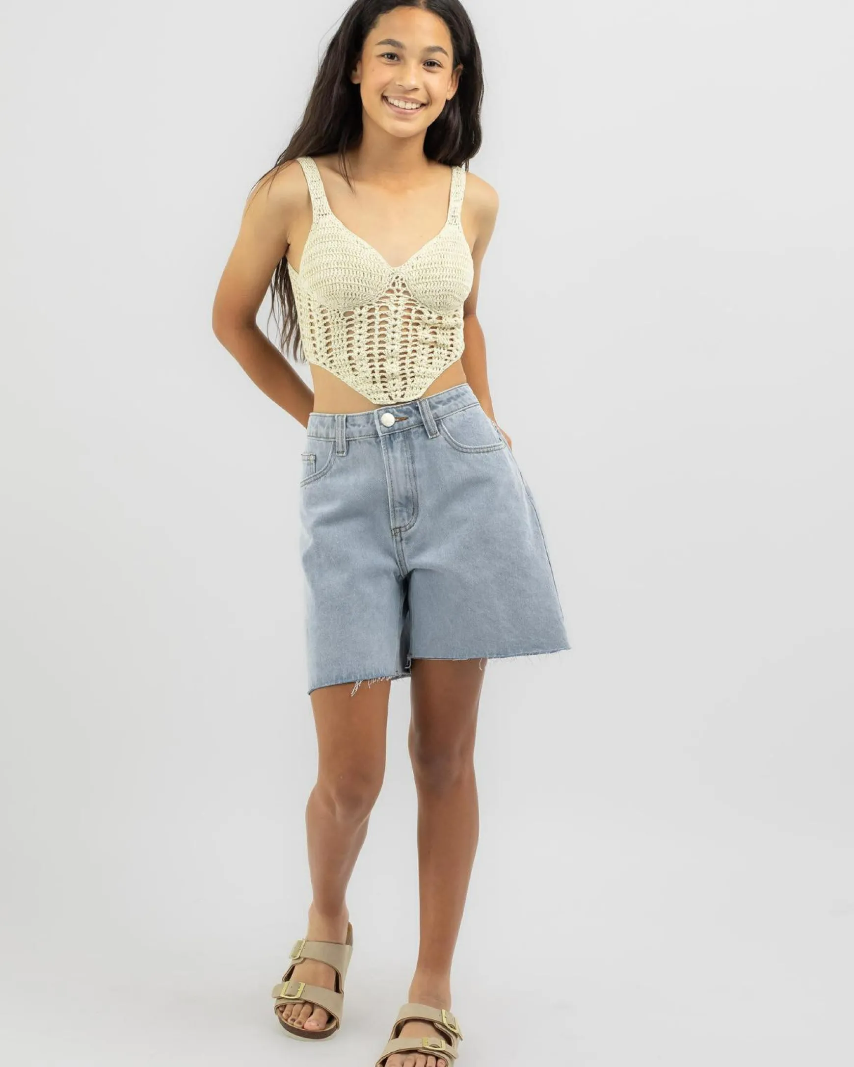 The DESU Girls’ Ryder Mid Denim Shorts in Light Blue are perfect for a stylish and casual look this summer.