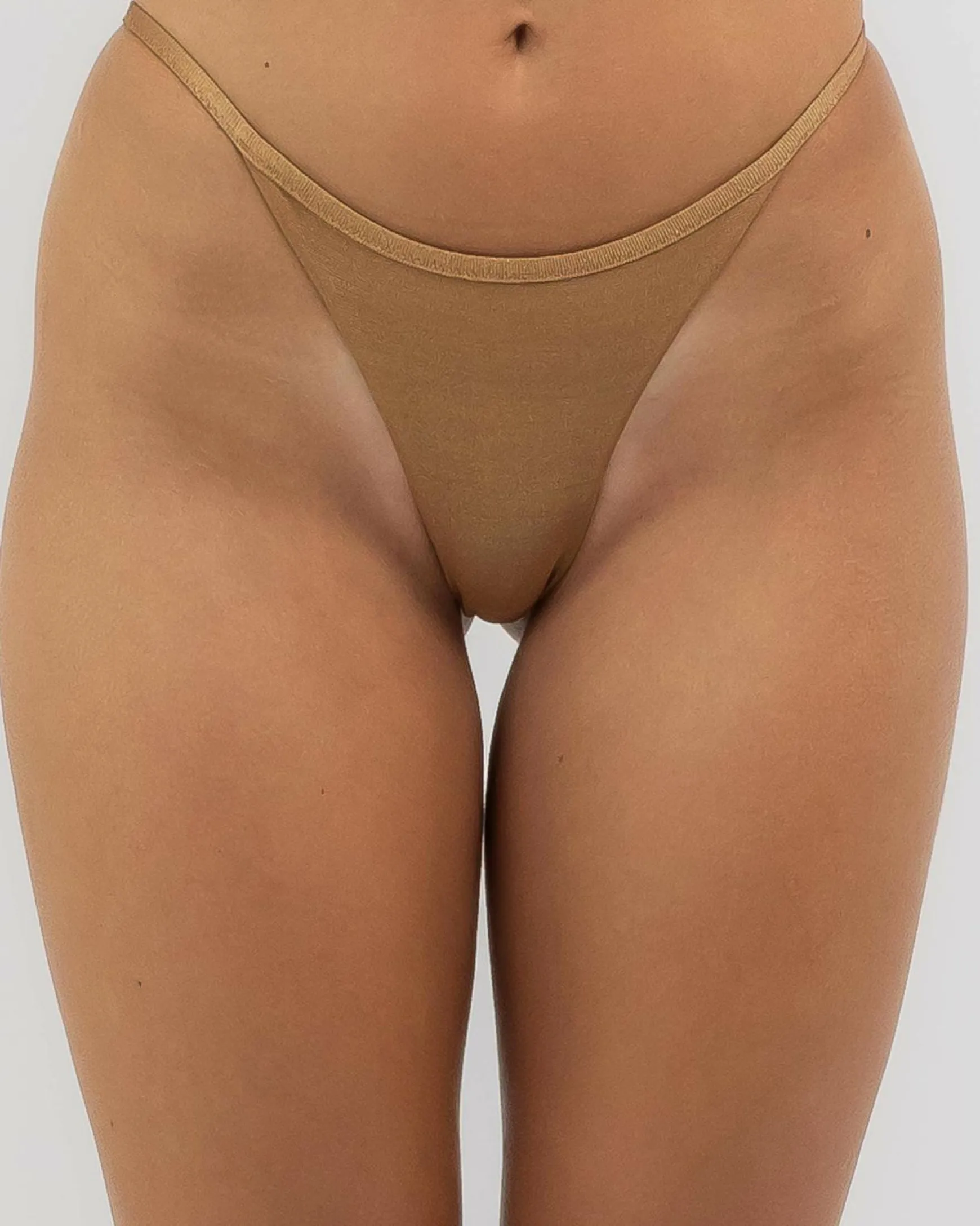The RVCA Halo Skimpy Bikini Bottom in a stunning copper hue is the perfect choice for a bold and eye-catching beach look.