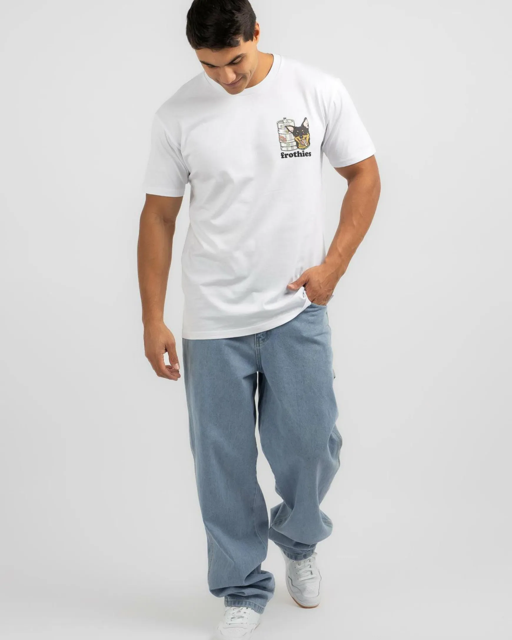 The Frothies Kegs & Kelpies T-Shirt in White is a versatile wardrobe staple, perfect for pairing with your favorite jeans or shorts.