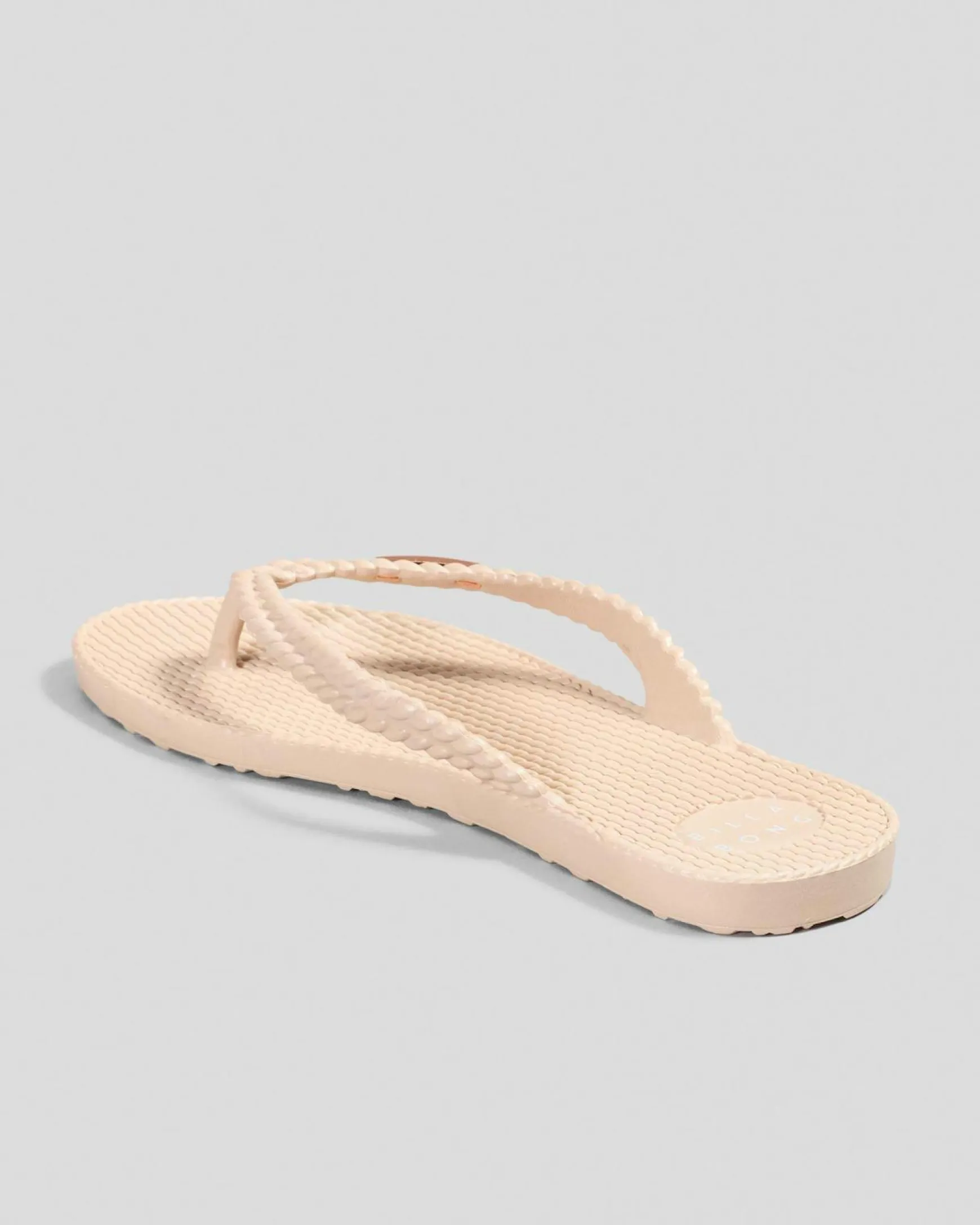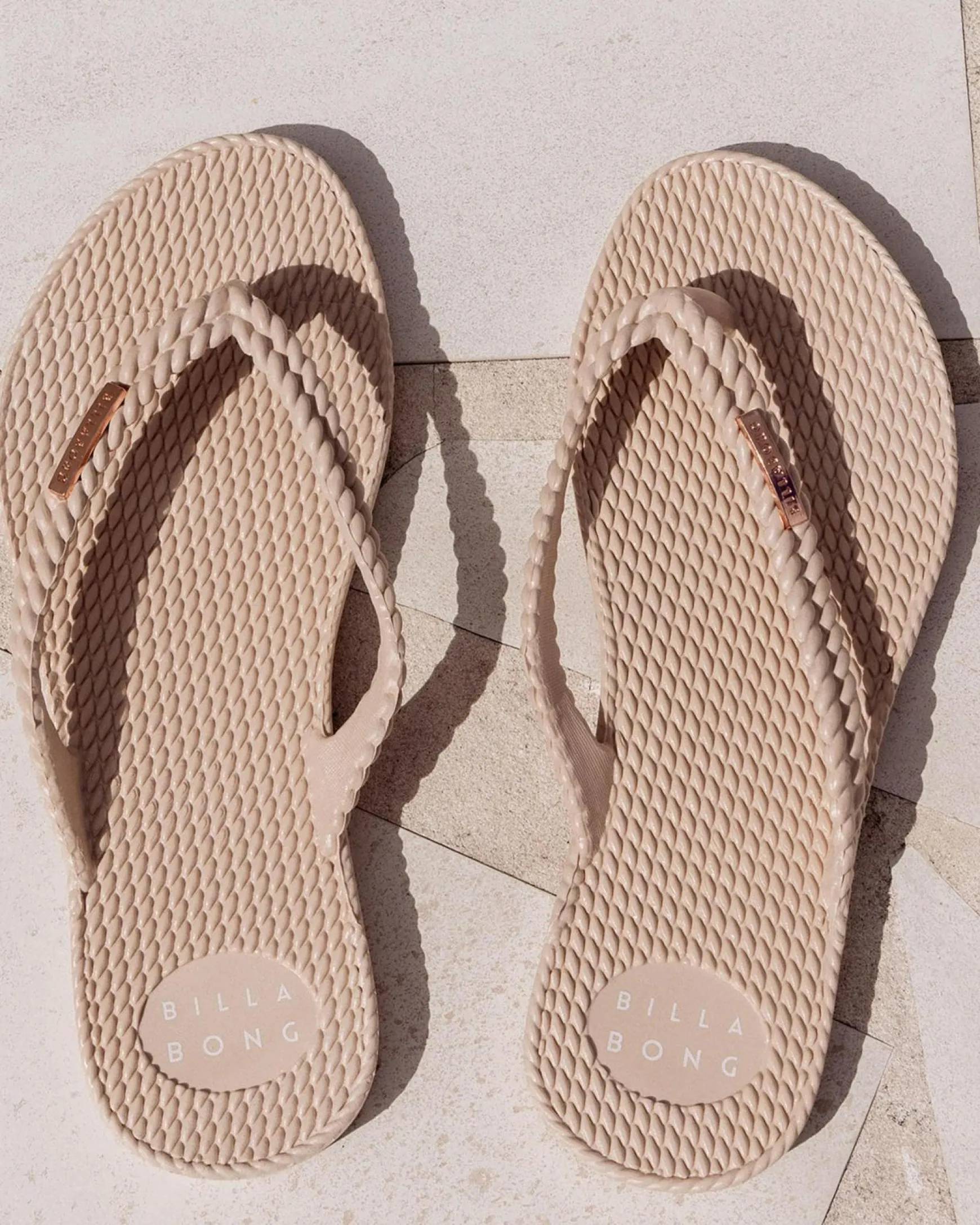 Slim straps, Textured footbed, Metal logo, Branded strap