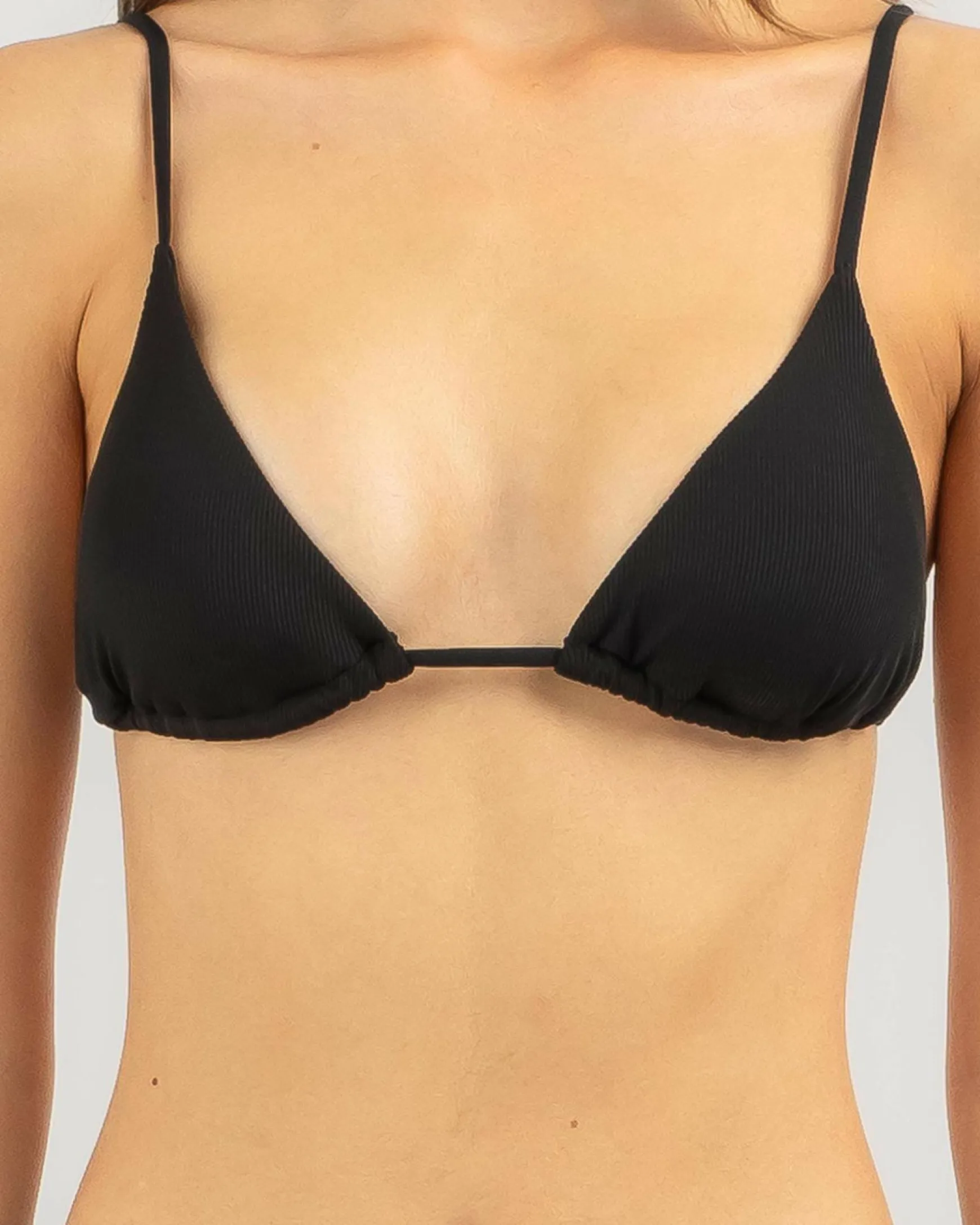 The Topanga Milani Sliding Triangle Bikini Top in classic black is a sleek and versatile swimwear essential, perfect for mixing and matching with your favorite bottoms.