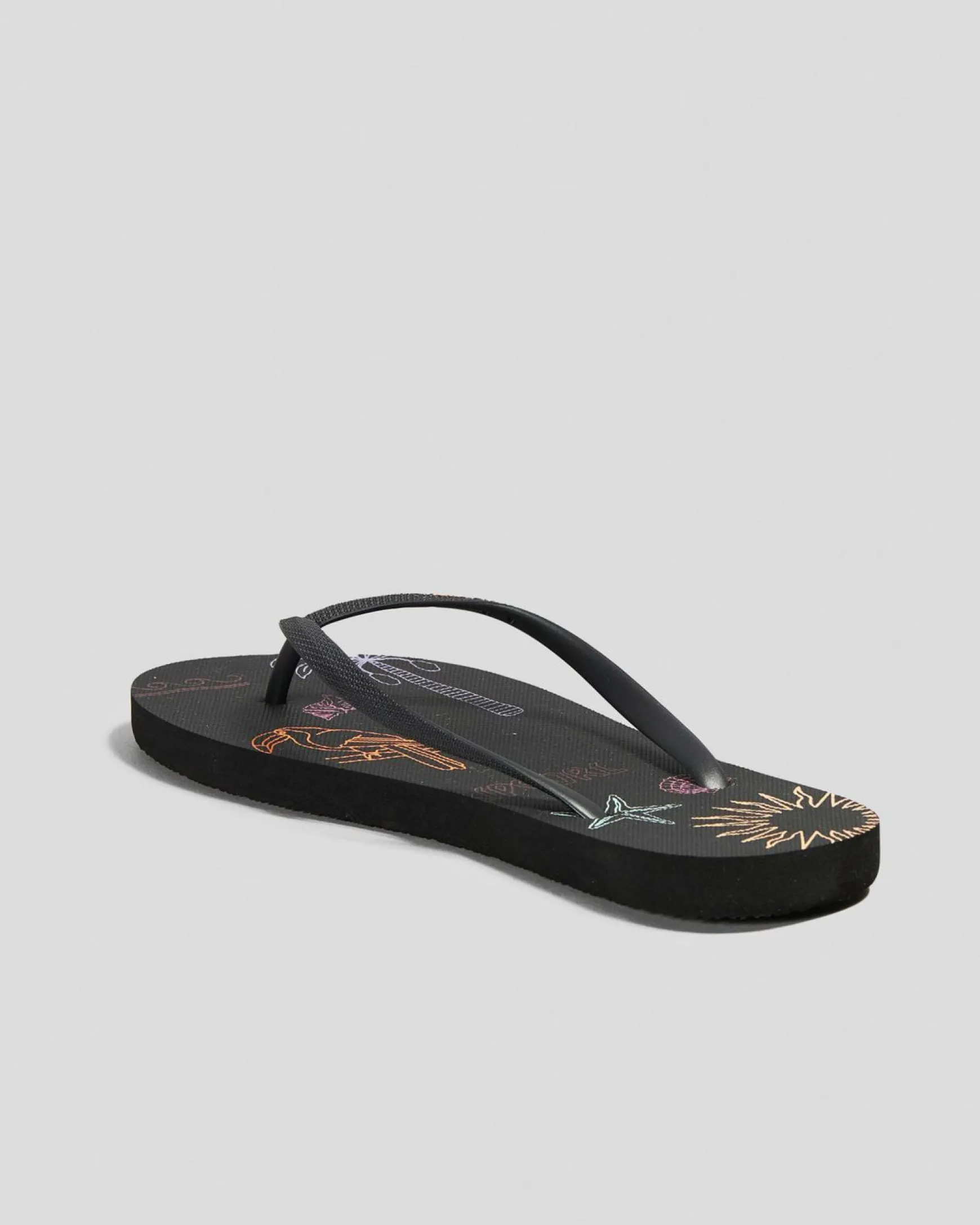 The Rip Curl Mixed Bloom Thongs in Black add a touch of edgy sophistication to your summer footwear collection.