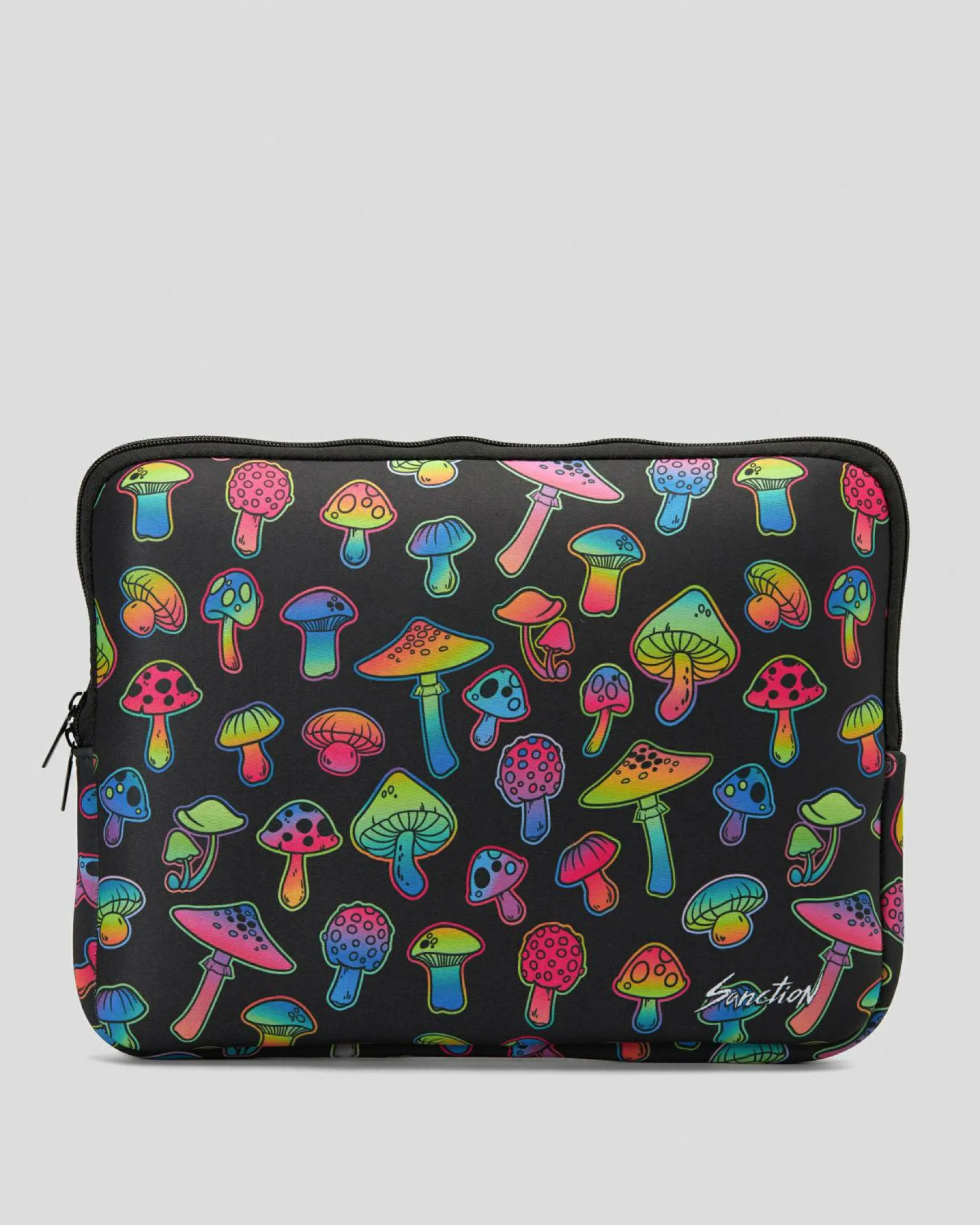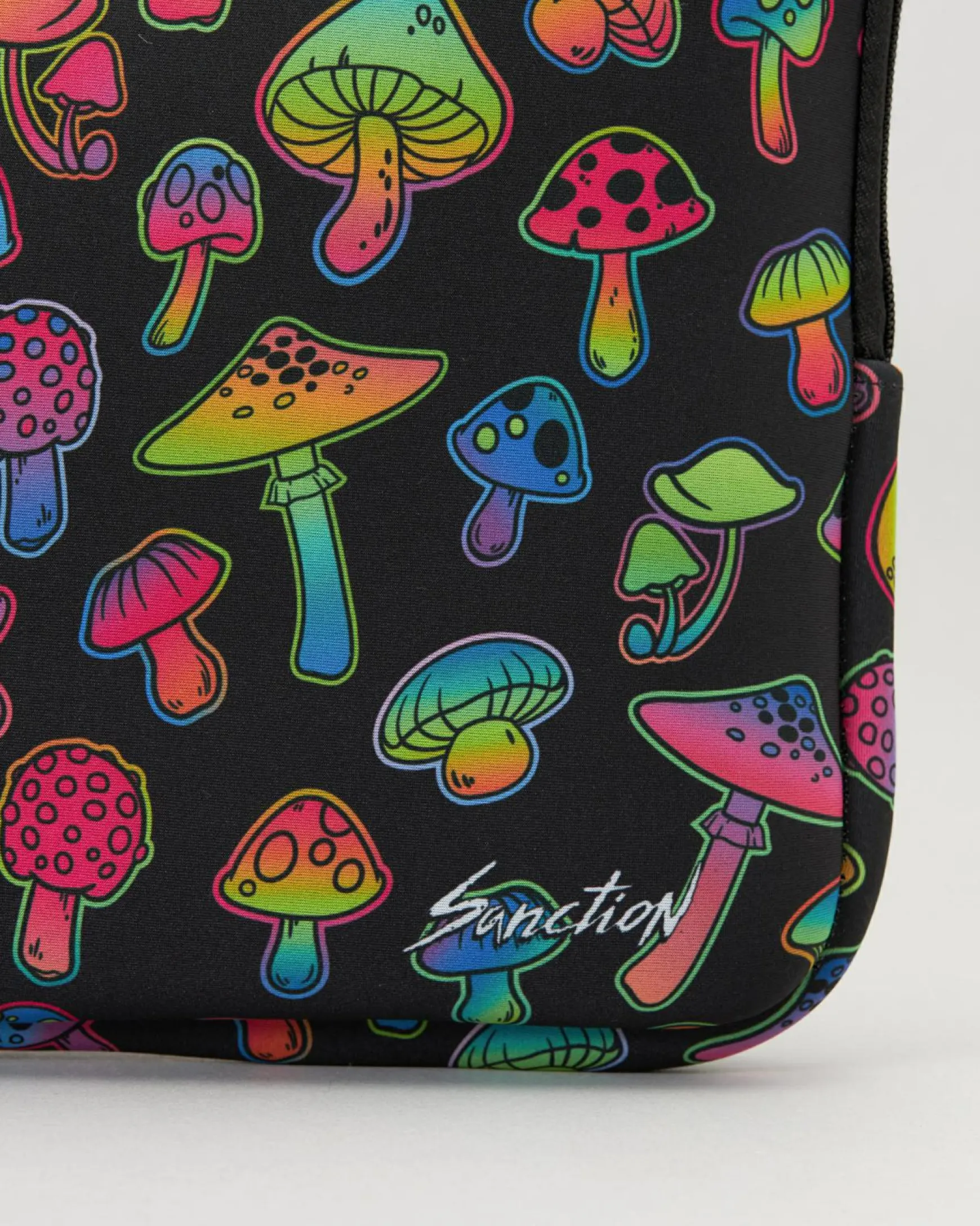 Stay stylish and protected with the Sanction Mushroom Magic Laptop Sleeve in black. Perfect for carrying your 14 laptop in a unique and sleek design.