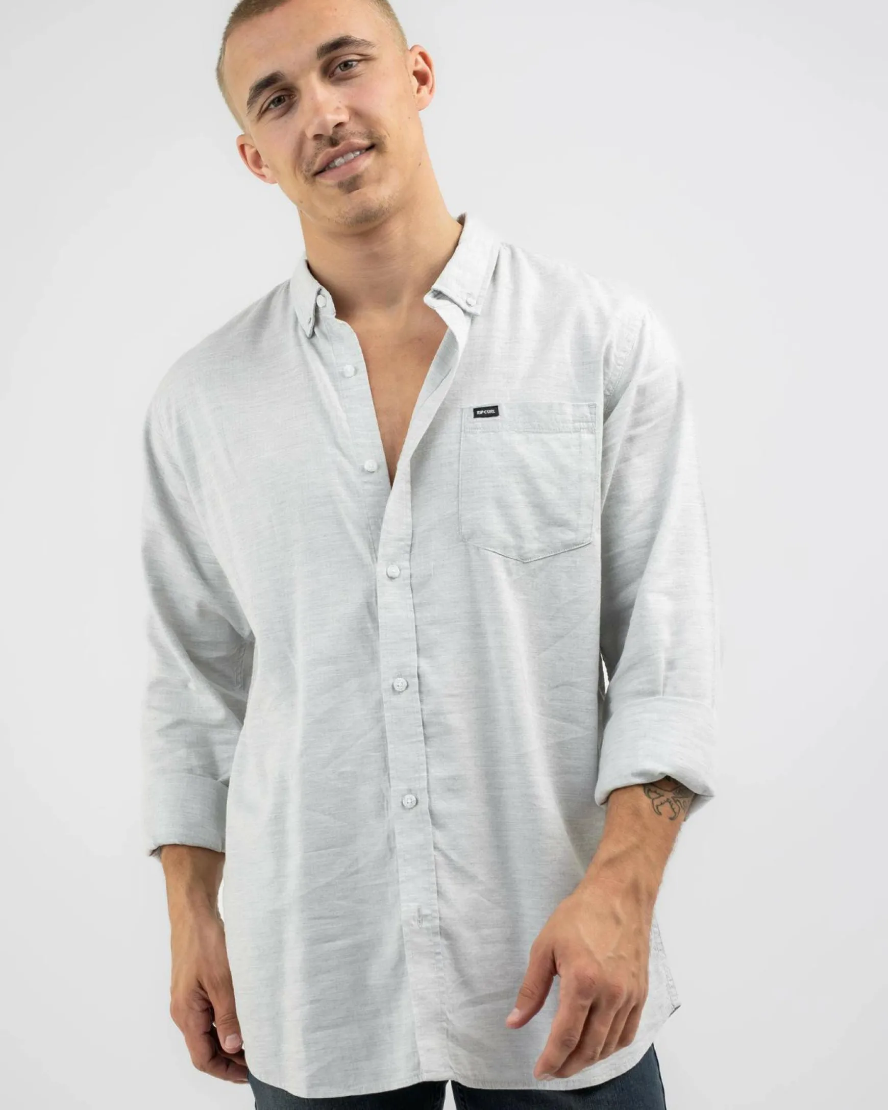 The Rip Curl Ourtime Long Sleeve Shirt in off white is a versatile wardrobe staple, offering a clean, classic look for any occasion.