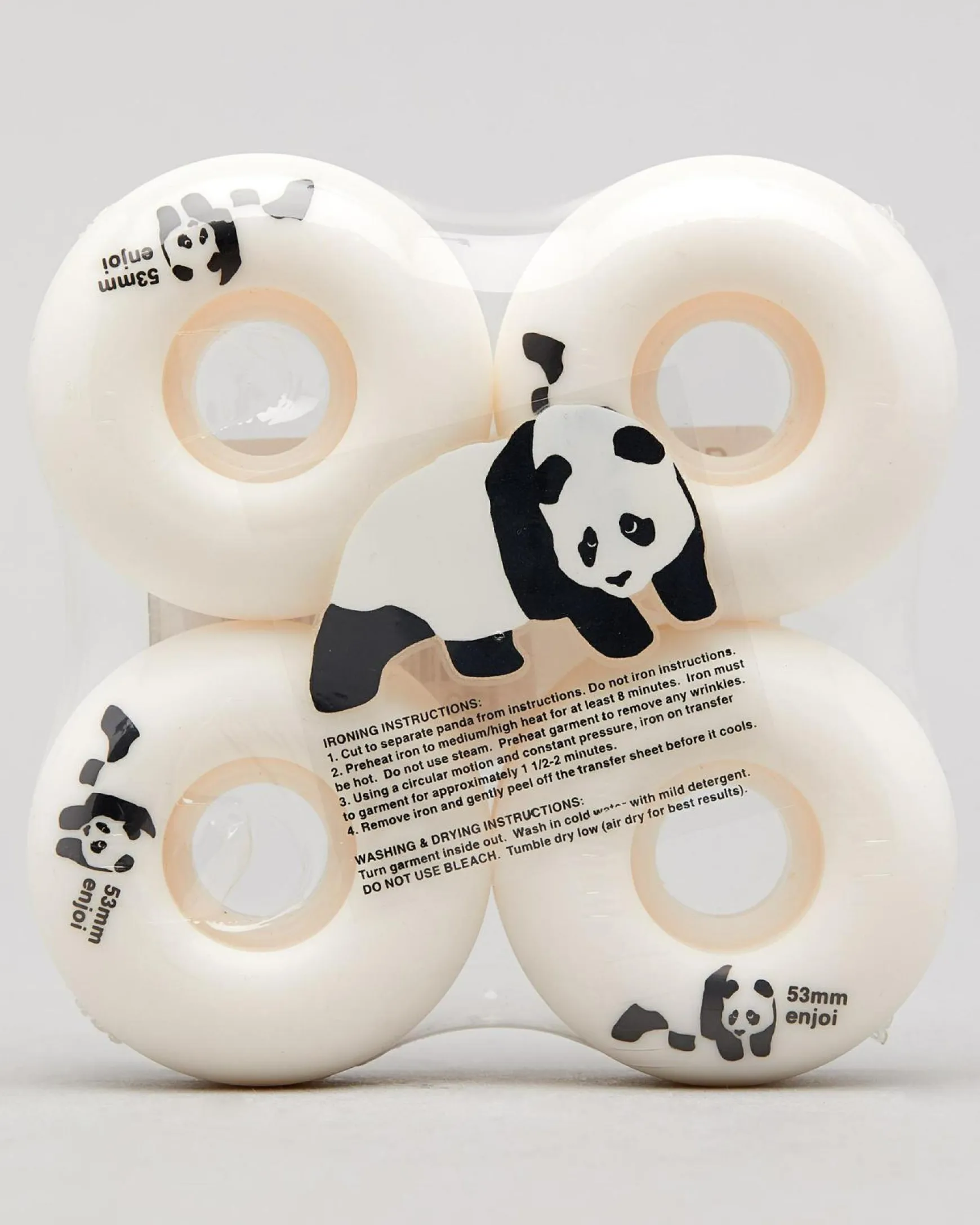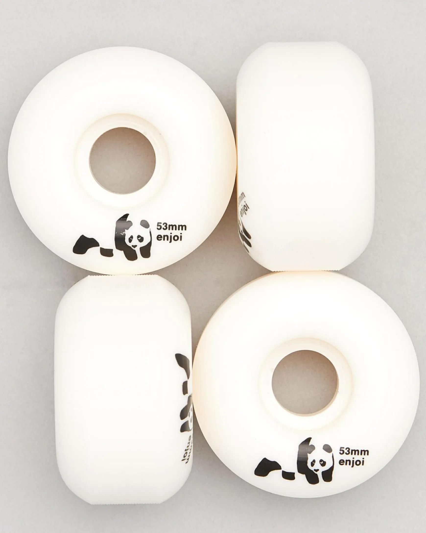 Cruise through the streets with style in these sleek white Enjoi Panda 53mm Skateboard Wheels, perfect for adding a pop of colour to your board.