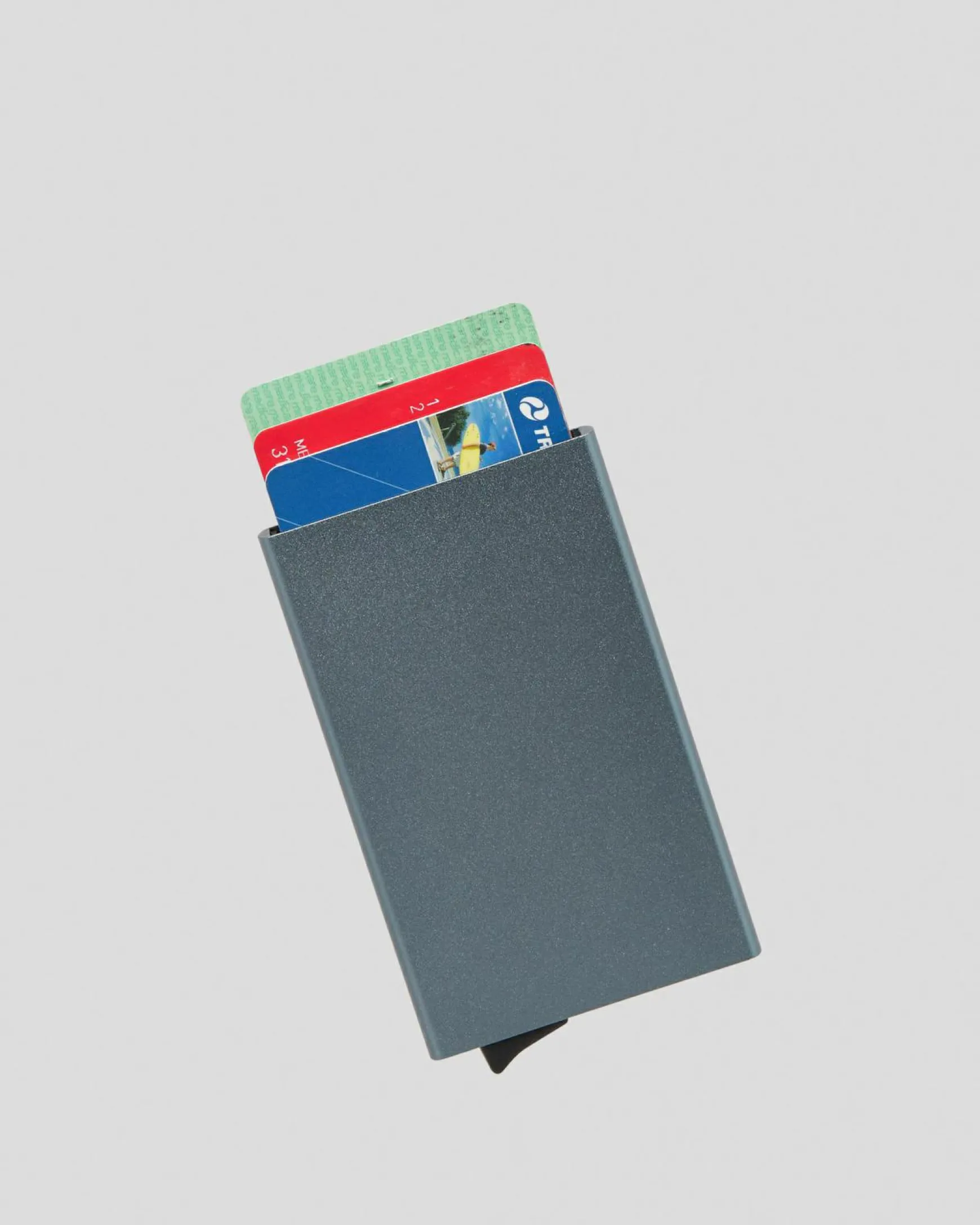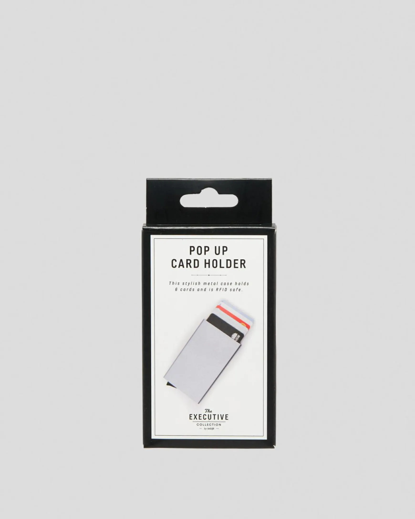 This stylish metal case holds 6 cards and is RFID safe.