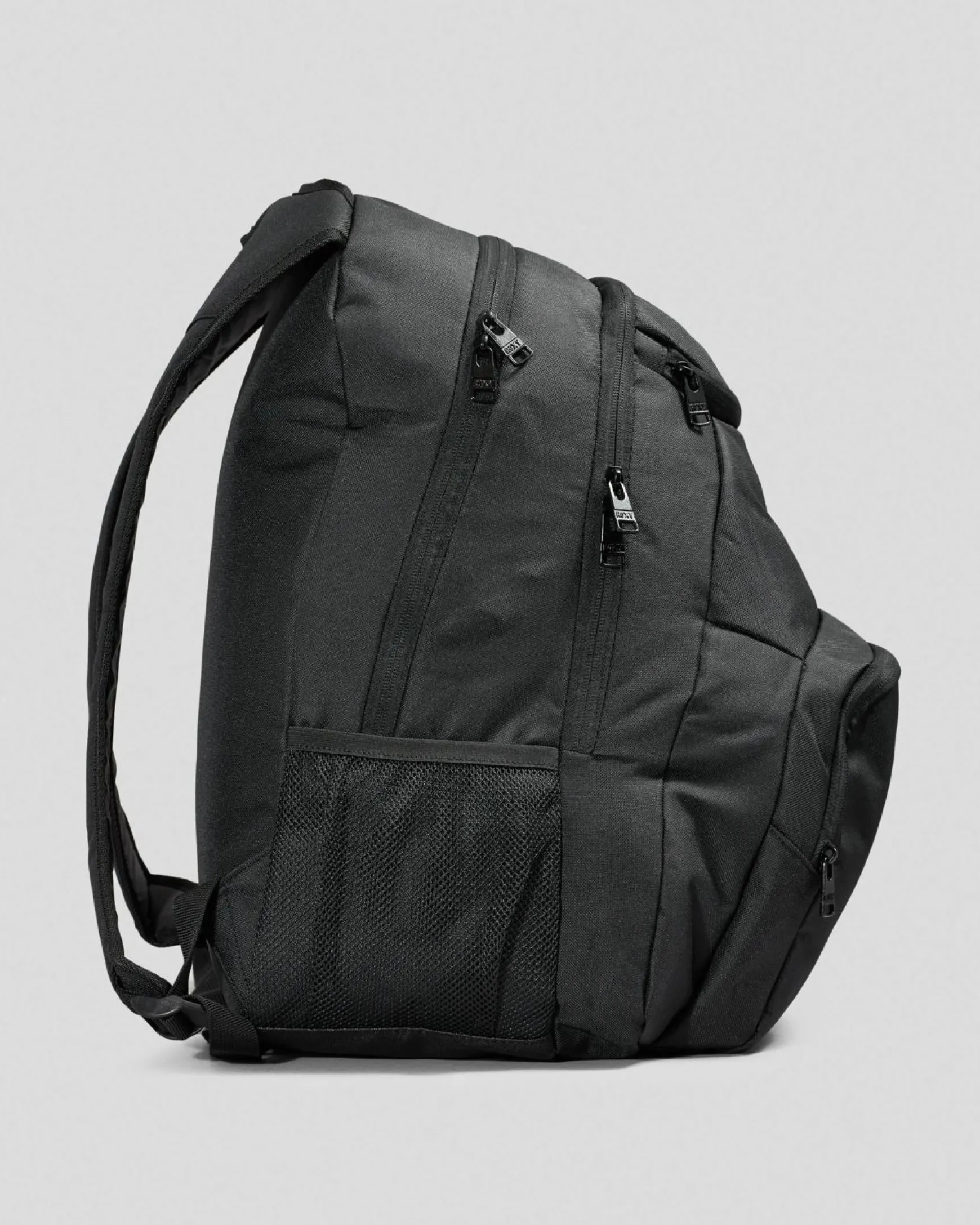 Handle, Adjustable straps, Padded straps, Padded backpanel, External zipped pocket, Fits A4 sized folders and books, Waterbottle pouch