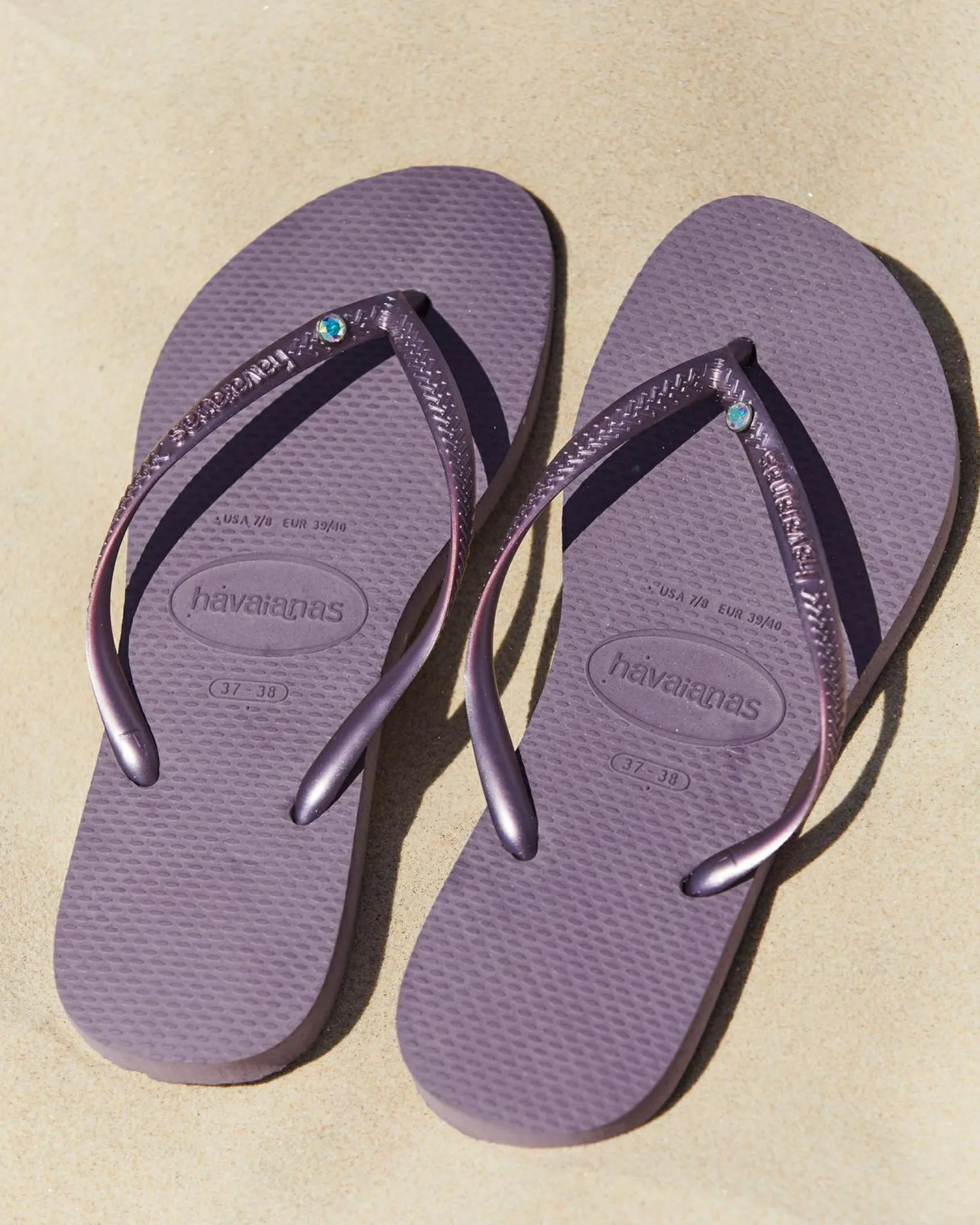 Add a touch of elegance to your summer look with the Havaianas Slim Crystal II Thongs in Malve. The beautiful mauve color will elevate any outfit.