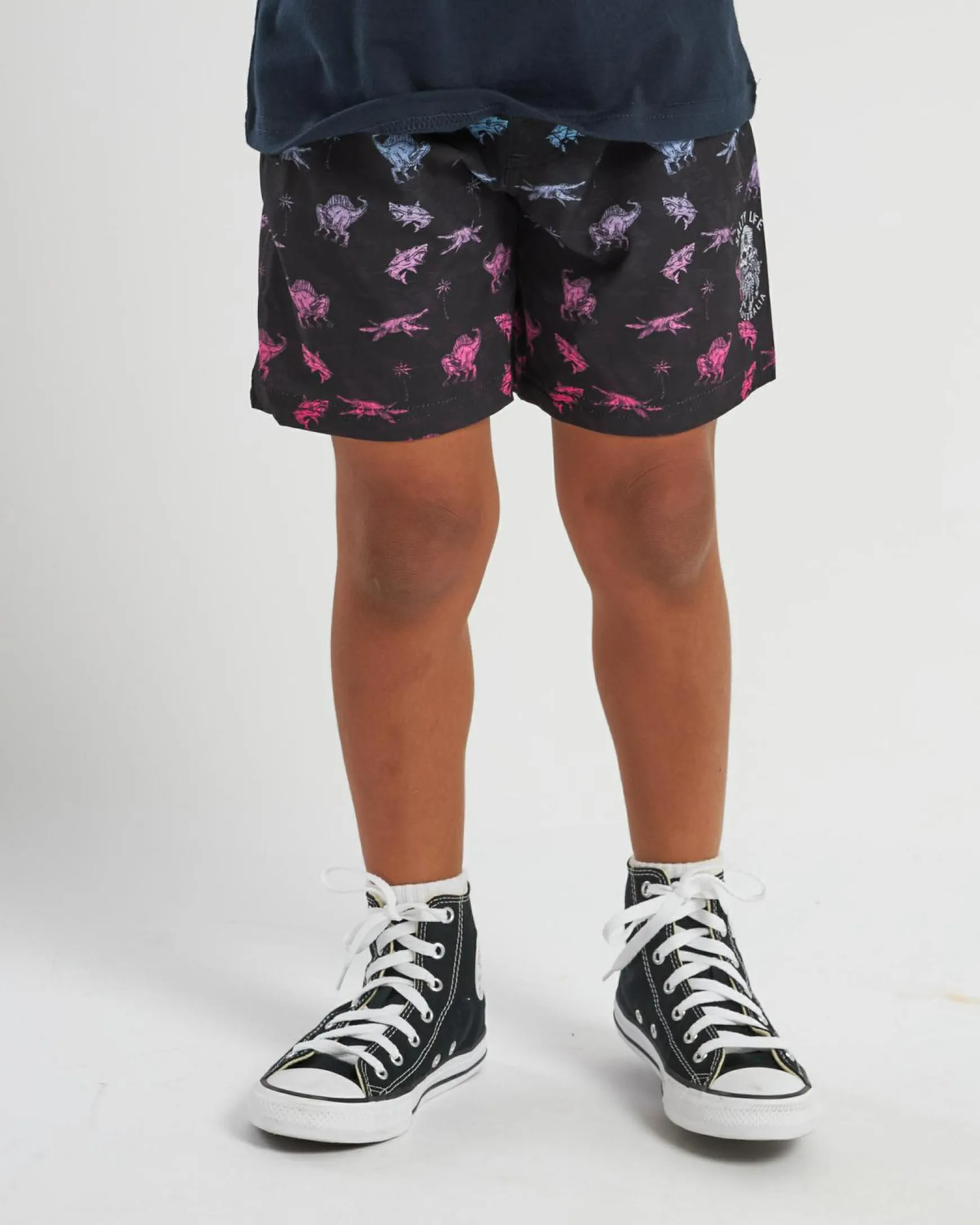 The Salty Life Toddlers’ Prehistoric Mully Shorts in Pink are vibrant and fun for your little one’s summer adventures.